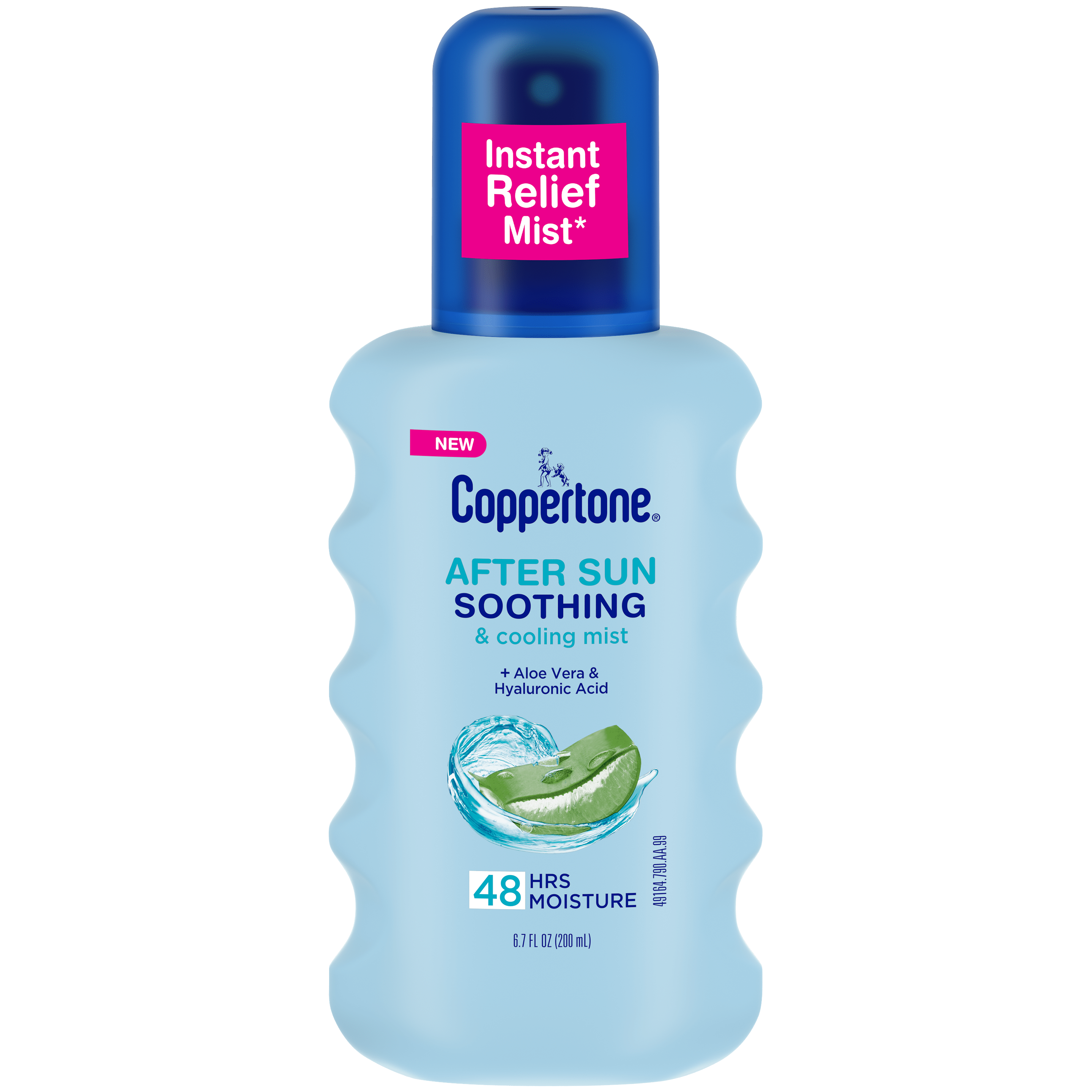 Coppertone After Sun instantly soothes and hydrates sun-stressed skin. This refreshing and cooling mist provides 48 hours of hydration and is enriched with aloe vera and hyaluronic acid to help restore skin's moisture.